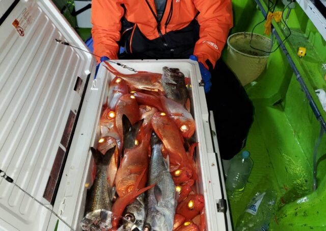 釣果情報 10月27日半夜釣果 半夜キンメ・クロムツ船 魚種: キンメ 25~35cm 18~50尾 クロムツ 30~44cm 0~6尾 前半のクロムツは食いが渋めでしたが その後のキンメは喰い良くズラズラとやれましたね 皆さんクーラーズッシリでした 今後も魚影... 2023.10.28 釣果情報