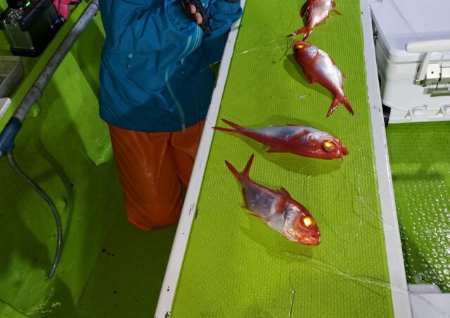 釣果情報 10月24日半夜釣果 半夜キンメ・クロムツ船 魚種: キンメ 25~38cm 21~50尾 クロムツ 29~41cm 0~10尾 今日も前半は良型のクロムツがポツポツと当たり その後はキンメがバリバリ食いましたが 横取りの邪魔が出てしまいましたね それ... 2023.10.24 釣果情報