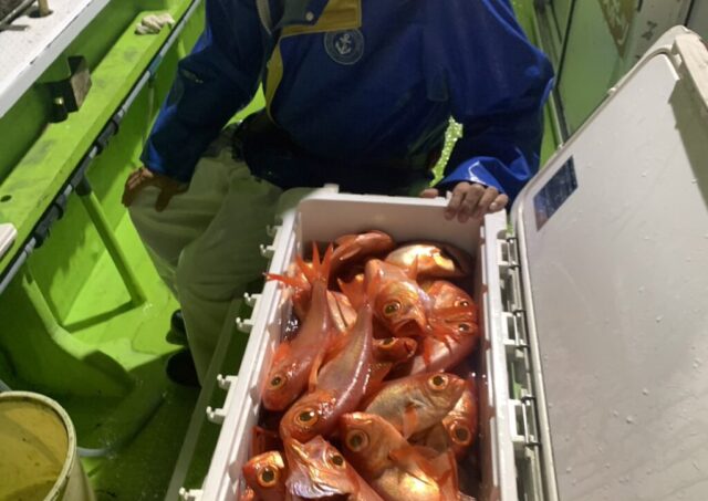 半夜キンメ・クロムツ船 魚種: キンメ 25~35cm 22~50尾     クロムツ  今シーズン初の出船でした キンメの魚影濃く、バリバリと釣れましたね 皆さんクーラーズッシリでした クロムツもポツポツと交じりました ジギングの方も当...