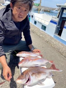 今日はマダイ専門で3名様で出船でした
