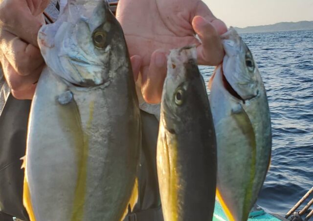午前シマアジ船 魚種: シマアジ 0.8k 1尾 その他: カワハギ・イサキ多数など 今日はお客さん3名様と寂しく出船でした なんとかシマアジの顔見れました 良型の魚影もあるので潮が変われば また期待出来そうです 明日は午前イサキ船・空席...