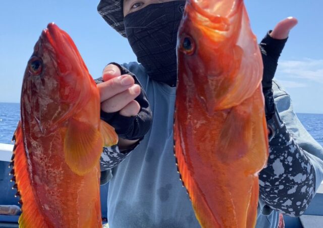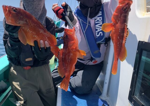 午前テンヤ・タイラバ船 魚種: アカハタ 24~37cm 0~8尾 その他: マダイ・メイチダイ・カサゴなど 今日も潮の流れが速くて釣りづらかったですが 合う方はポツポツとヒットしましたね 大物も2回ヒットしましたがバレてしまいました 明...