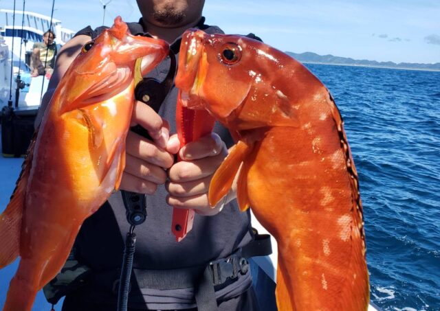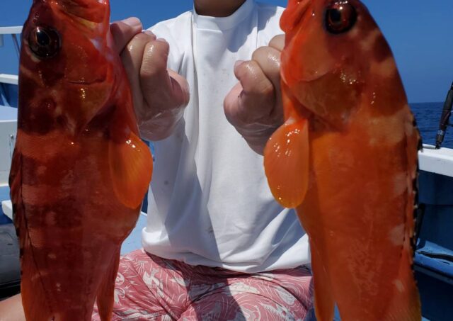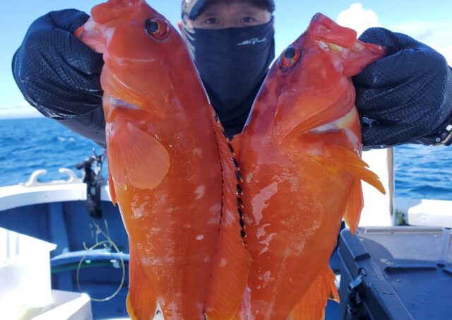 午前テンヤ・タイラバ船 魚種: アカハタ 24~38cm 1~10尾 その他: マダイ・カサゴ・メイチダイ等 今日は当たりの良い時間にバリバリと 釣れた方は良型主体にゲットできました メイチダイは当たり活発でしたね 大物も2回ヒットしまし...