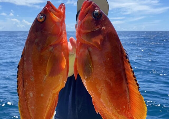 釣果情報 8月11日釣果 午前シマアジ船 カンパチ4.3㎏・イサキ・マダイ・カワハギ シマアジの当たりは多数ありましたが バラシと横取りで苦戦しました!泣 午前テンヤ・タイラバ船 魚種: アカハタ 24~42cm 2~10尾 その他: イシダイ・コロダイ・... 2023.08.12 釣果情報