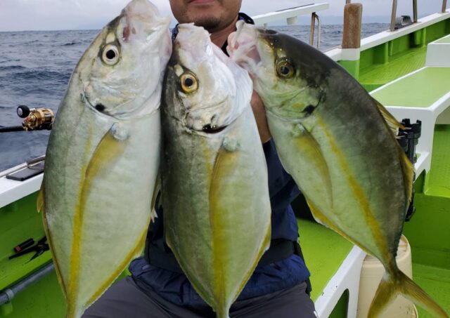 釣果情報 5月25日釣果 午前シマアジ船 魚種: シマアジ 0.5~1.0k 0~10尾 カンパチ 1.2~1.5k 0~2本 その他: ヒラメ 3.3k・イシガキダイ・メイチダイ・カワハギ・イサキ多数など 今日もシマアジの活性高くて好調に当たりましたよ ... 2023.05.25 釣果情報