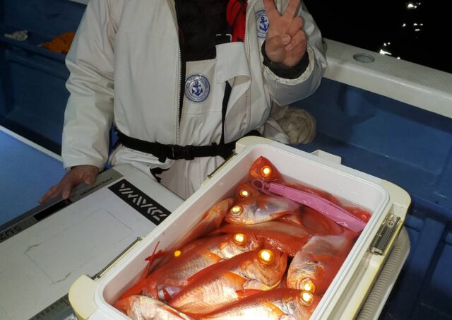 釣果情報 2月5日半夜船釣果 半夜キンメ・クロムツ船 魚種: キンメ 24~35cm 15~50尾 喰い出すと止まらず最後までバリバリとやれました ジギングの方も12~36尾でしたよ 魚影濃く、今後も期待です 次回出船は11日です 2023.02.06 釣果情報